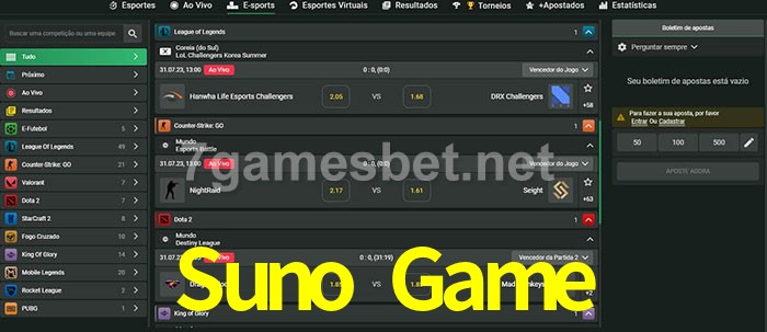 O Suno Game oferece uma grande seleção de opções de apostas em e-sports com probabilidades competitivas